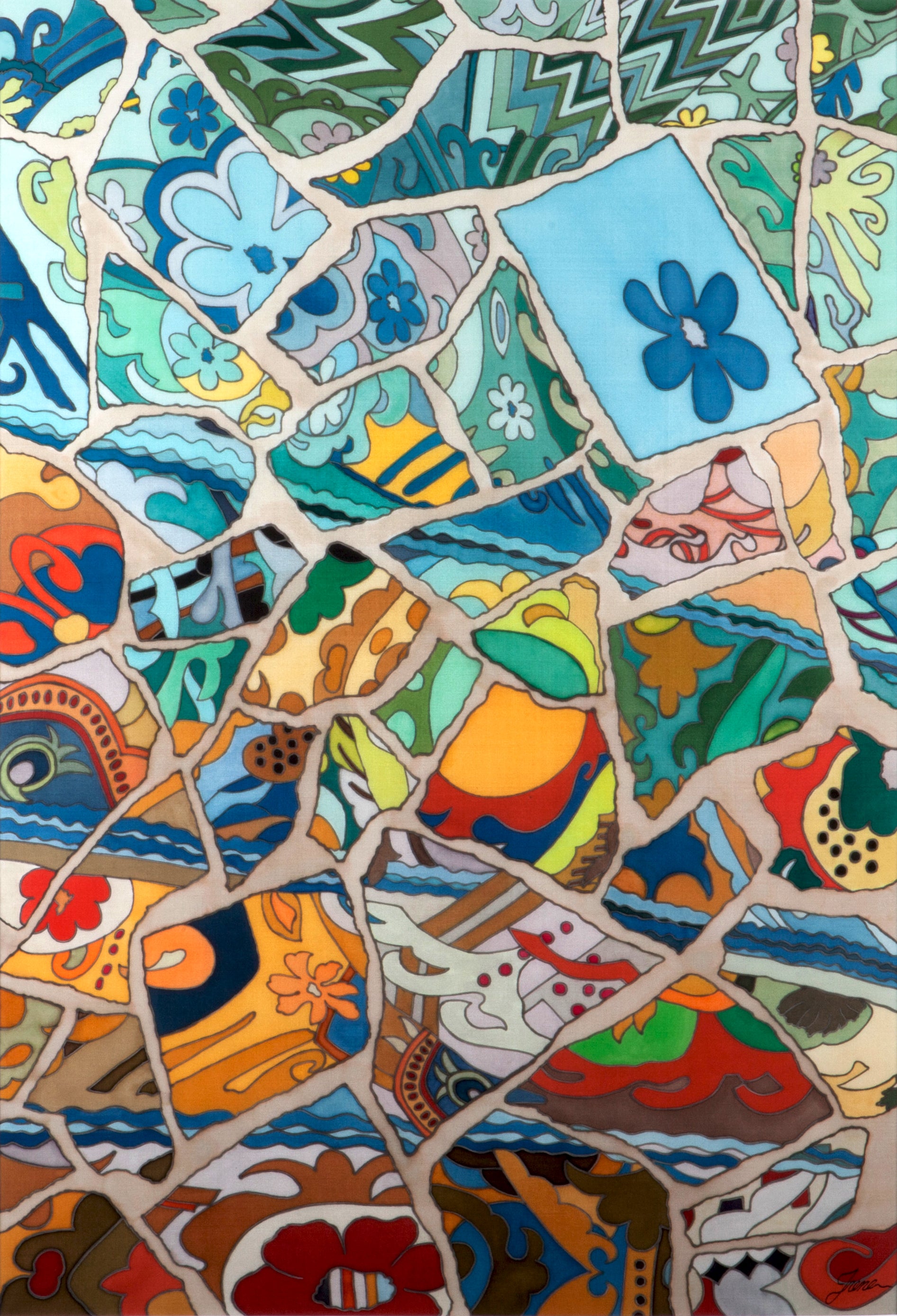 In this silk painting, I have tried to depict the destruction of nature by humans. Adding two eyes as witnesses can further emphasize this issue from my perspective. To set the colours permanently, I used steam setting techniques. The materials used include silk fabric and French acid dyes.