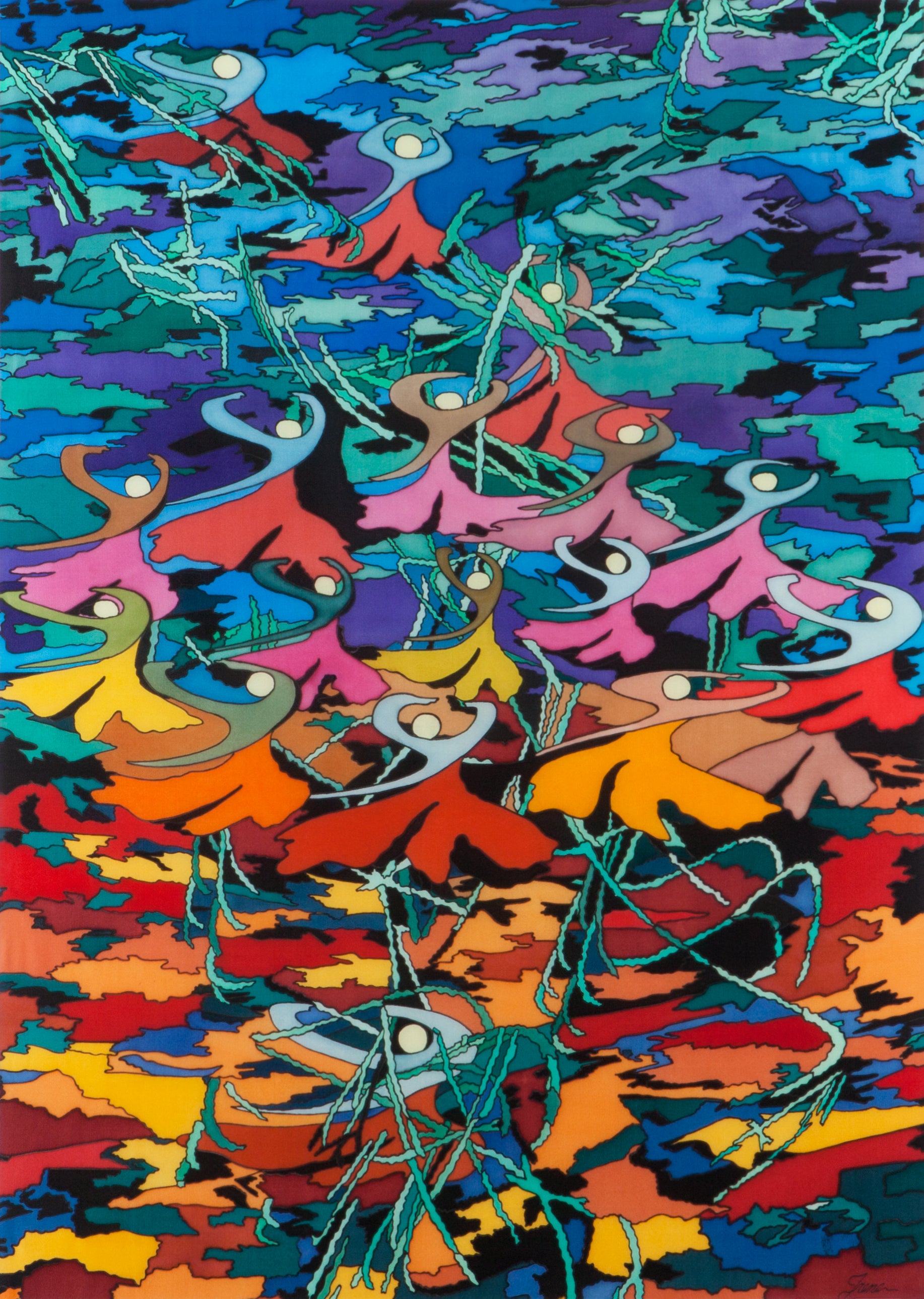 Materials: Silk fabric and French acid dyes.